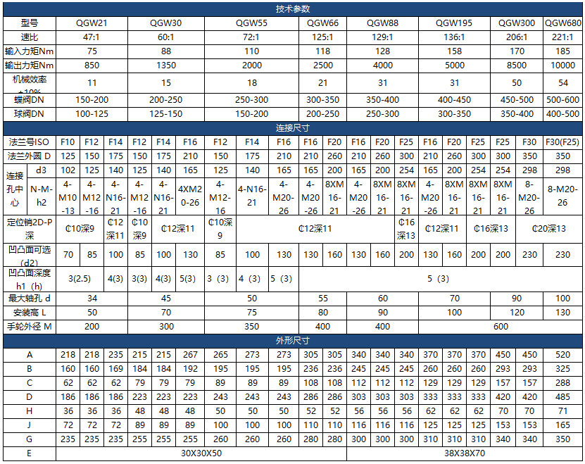 輸入小力矩,開動大閥門,使操作人員省力,每種型號提供多個傳動比,能更好的匹配不同規格的閥門。